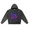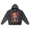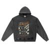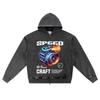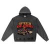 DTG print Knitted Denim Zip-Up Hoodie Speed Meets Power Brother Print Zipper Hoodies