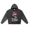 DTG print Knitted Denim Zip-Up Hoodie Make Money Not Execuse Brother Print Zipper Hoodies