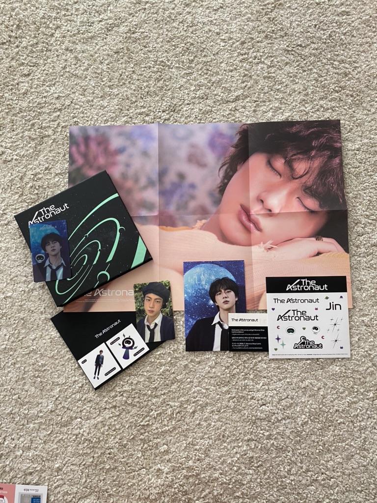 💜✨JIN ER MAGISK✨💜 💫 Jin kommer med singelen sin The Astronaut og den er vakker 😍 💫 Albumet inneholder: - CD-en - Fotobok - Klistremerker - Post - PC - Plakat - Ekstra KPOPMERCH-innhold: PC-er, klistremerker og hanteo-sertifikat 💫 Fremhev hvor godt alt har kommet og hvor RASK, på 1 uke var jeg i Spania 😍 💫Det er verdt å ha det fysiske albumet siden fotoseansen er vakker, og Jin fortjener all kjærlighet i verden. 💫Takk Joom for at du legger så mye kjærlighet 💕