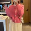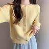 Genser Strikket Cardigan Dame Vår og Høst 2023 Ny Søt Løs Solid Langermet O-hals Liten Kort Genser Damefrakk