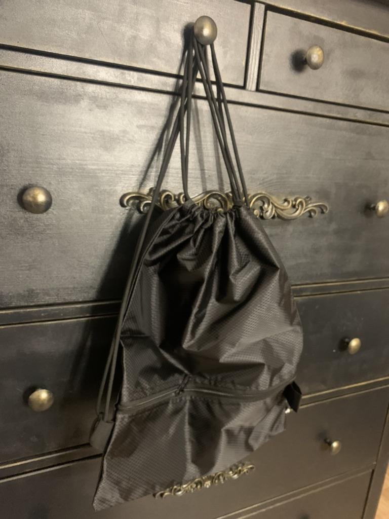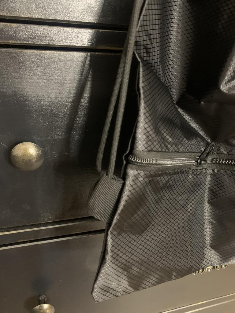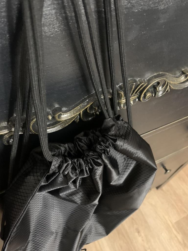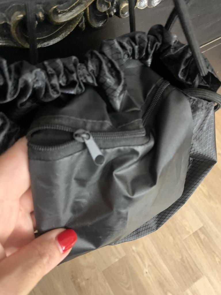 Skopose Vanntett Stoffet rasler litt, men for et vanntett alternativ er dette normalt. På kuliene, Snoren er festet på en slik måte at du kan bære den som en ryggsekk. Hvis den ytre lommen har glidelås, og en liten indre. Husk at stoffet til en svart ryggsekk er forskjellig fra en farget. Jeg har fortsatt den blå, den er som Oxford-materiale..