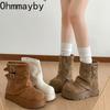 fashion Chunky Women Short Boots Fashion Belt Buckle Waterproof Shoes Autumn Winter Platform Flats Women's Ankle Booties
