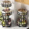 360 ° Rotating Spice Jar Glass Organizer Multifunctional Condiment Shelf Kitchen Salt Flavor Container Flavouring Tank Shelf