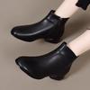 Fashion Short Shoes for Woman Round Toe Booties Elegant with Medium Heels Black Leather Women's Ankle Boots Work Footwear Spring Autumn