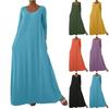Dame Mote Casual Bomull Lin Kjole Ensfarget Langermet Lang Kjole