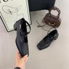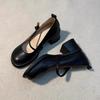 Mykt skinn med Mary Jane-sko dame tykk hæl svart medium hæl små skinnsko firkantet tupp enkle sko
