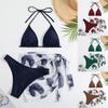 New printed lace-up mesh drawstring blouse sexy bikini three-piece swimsuit women