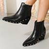 Fashion Genuine Leather Western Ankle Boots Women Fashion Rivet Belt Buckle Design Shoes Sexy Pointed Toe Square Heel Zipper Botas Mujer