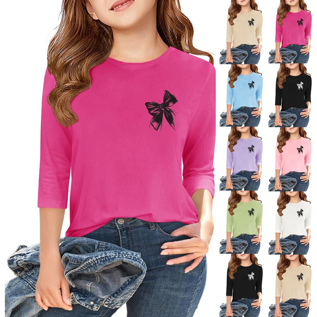 Trykktopper for unge jenter Rund hals 3/4 ermer T-skjorter Trendy topper Antrekk T-skjorter