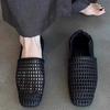 Sheepskin version~ New summer design sense niche square head Muller shoes hollow pleated temperament retro flat single shoes women