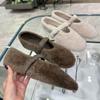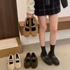 French flat-bottomed fairy wind 2025 round head pearl word with fluffy shoes women wear autumn and winter new cotton ladyshoes