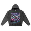 DTG print Knitted Denim Zip-Up Hoodie Race Hard Live for Speed Car Typography Brother Print Zipper Hoodies