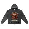 DTG print Knitted Denim Zip-Up Hoodie Rich Man Brother Print Zipper Hoodies
