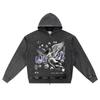 DTG print Knitted Denim Zip-Up Hoodie Canis Lupus Brother Print Zipper Hoodies