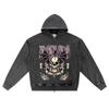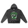 DTG print Knitted Denim Zip-Up Hoodie Mentality Death Metal Brother Print Zipper Hoodies