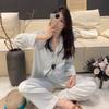 2025 Autumn Women's Casual Striped Pajamas: Loose, Simple Korean Style for In-Home or Outdoor Wear