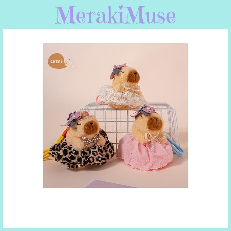 Søt blomsterhodeplagg sløyfe capybara plysjdukke anheng til gave og dekor