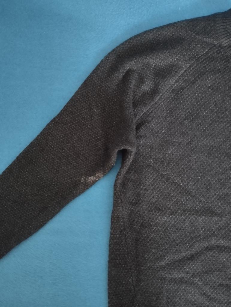 По центру рукава, на внутрішній поверхні, брак. Біла пляма, таке враження, що не пофарбовані нитки. Я засмучена.